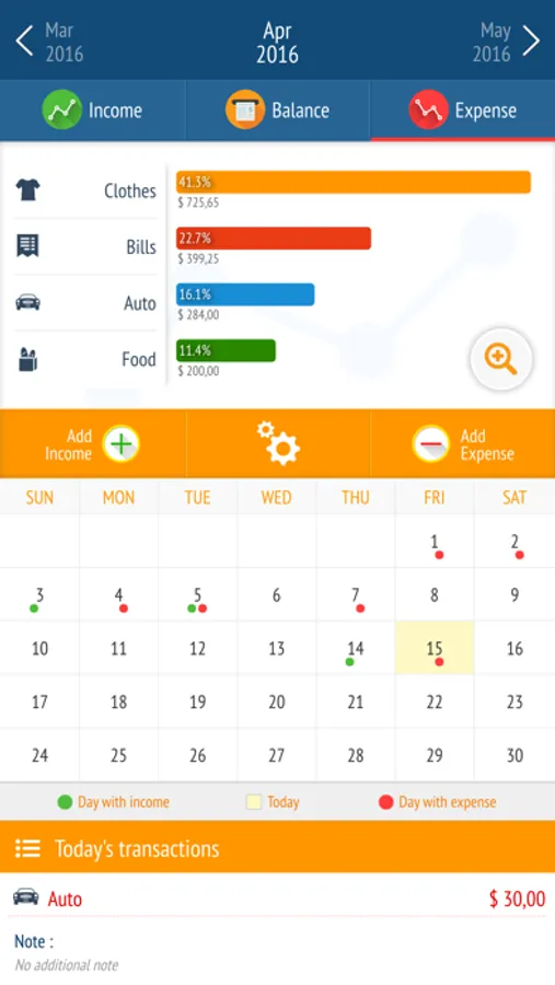 - financial calendar - monthly expense & income distribution at a glance - track and manage your every day expenses