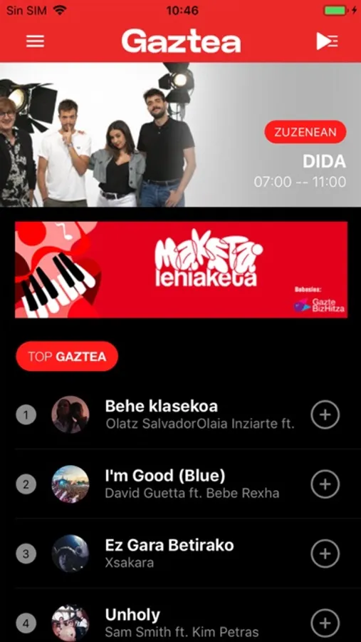 EiTB Taldeak gazteei zuzendutako kateak 24 orduz emititzen du euskaraz. Gaztea Irratia musika eta entretenimendua eskaintzen duen irrati musikala da. Goizeko lehen ordutik entretenimendua eta musika ardatz duen magazinak entzuleak astintzen ditu. Ondoren, goizerditik iluntzera, musika onena entzungai. Baina ez da irrati formula arrunta. Munduko hit-ak ezagutu eta Euskal Herriko punta-puntako taldeen azken diskoen berri izan dezakezu Gaztearen eskutik. Top Gaztea eta Top Dance zerrendak entzuteko eta zure playlist-ak osatzeko aukera Gaztearen aplikazio mugikorra berri honetan. Hango eta hemengo musika eta artisten azken nobedadeen, DJ ospetsuenen, gure lurraldeko jaialdien berri jakin nahi baduzu, ez zaitez galdu! Gaztea da zure irratia! … Eta orain, zure app-a!!!