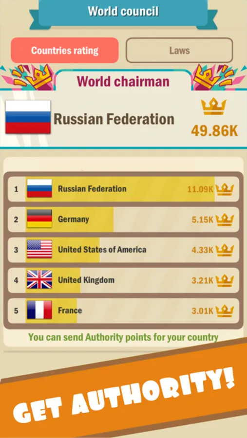 At the next World Council, which takes place every Sunday, your country will compete for world domination with the strongest countries of the planet, and who knows, maybe it will be you to play a crucial role!