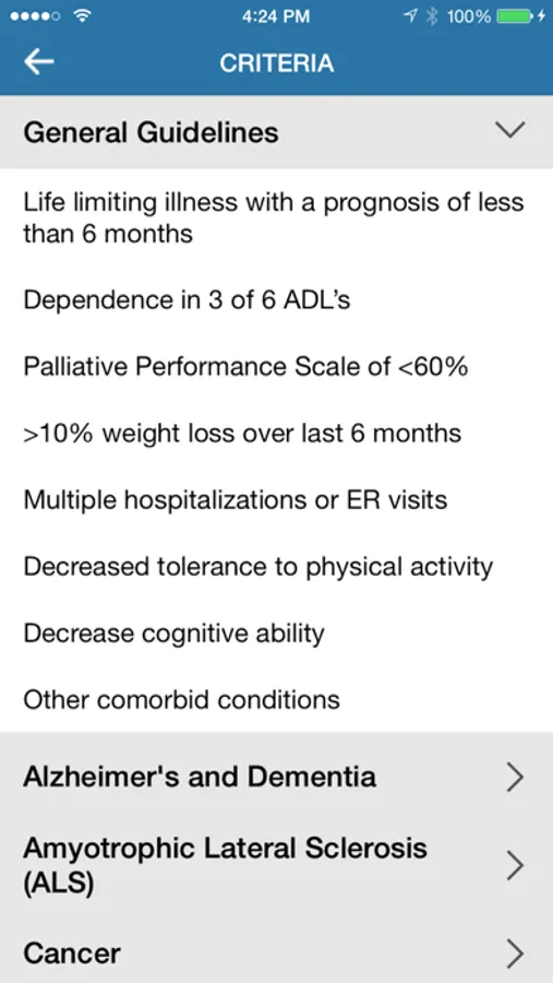 The app is designed to streamline the assessment and referral of a potential hospice patient. Users equipped with our app are able to determine a patient’s eligibility for hospice at a glance.
