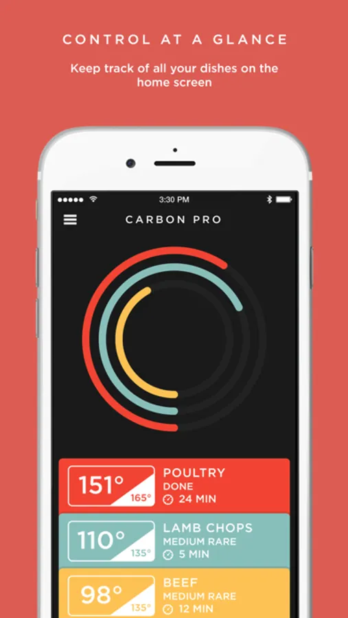 Carbon is the ultimate cooking companion for everybody from the budding chef to the kitchen novice. Follow the cooking process with just a glance and say goodbye to under or overcooked food forever. With the Carbon app, you can monitor the cooking process and know precisely when your food will be ready, freeing you to socialize with your guests or work on other dishes at the same time.