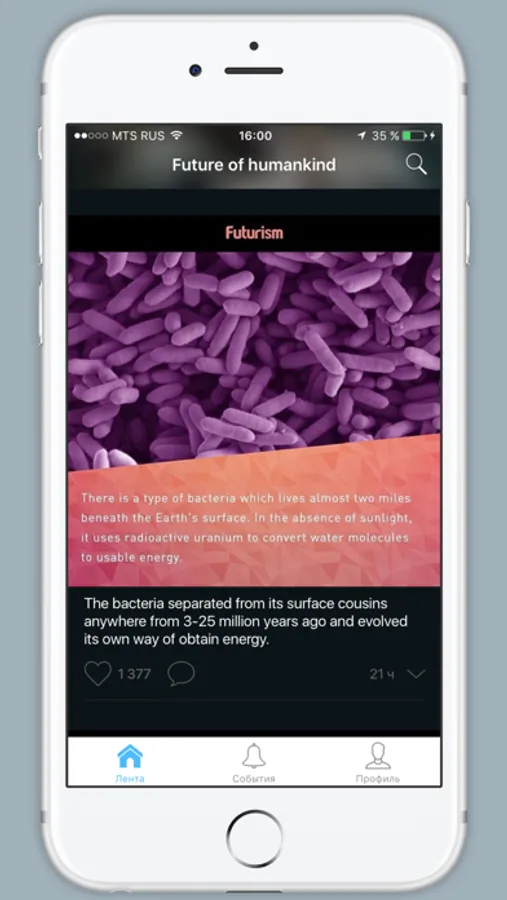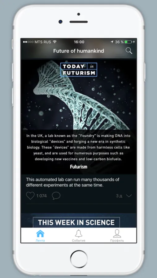The Future ideas from the whole world. We have selected the science ideas, infographics and articles and put them in one application. Feed is being updated every hour.