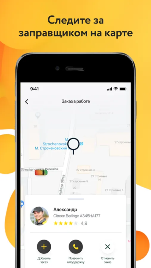 Укажите место, количество литров и удобное время. Наш заправщик привезет топливо и заправит ваш автомобиль. Если вы оставите лючок бензобака приоткрытым, мы заправим авто без вашего участия. Вы можете заниматься своими делами – приложение проинформирует вас о выполнении заказа.