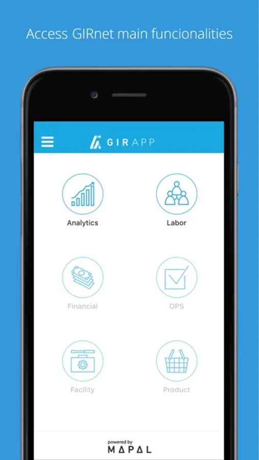 GIRAPP puts in the palm of your hand all business areas KPIs (sales, cashrec, financials, labour, operations, maintenance, etc.) from GIR Net´s Business Intelligence platform.