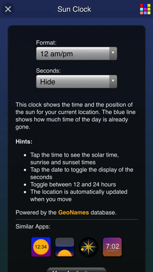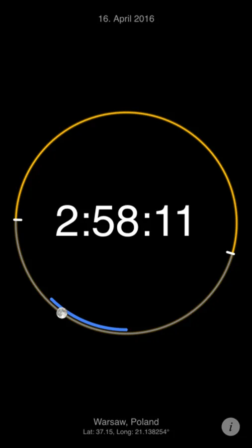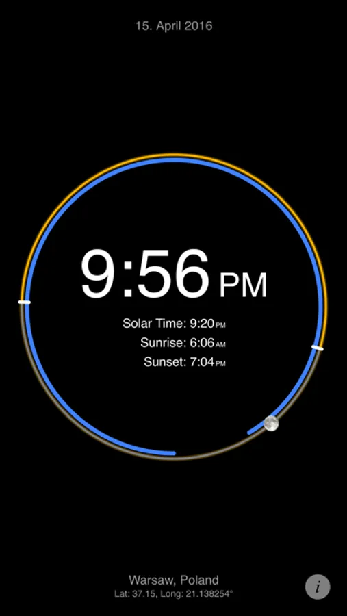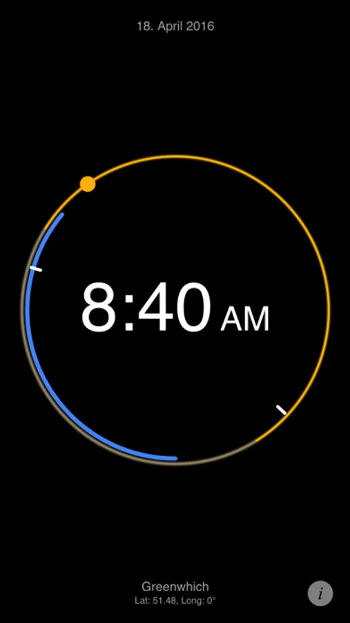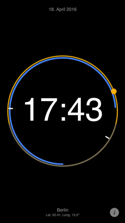 This clock shows the time and the position of the sun for your current location. The blue line shows how much time of the day is already gone.