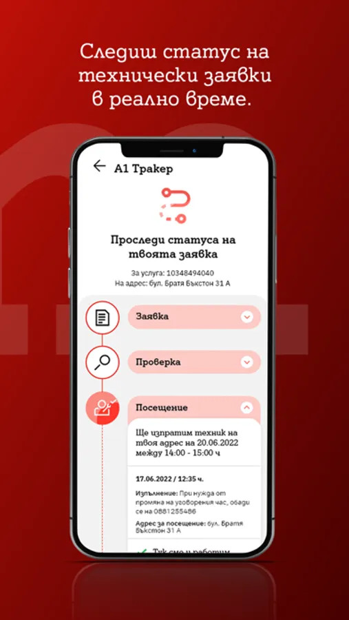 Следиш статус на заявки за инсталация на нова фиксирана услуга и технически проблем