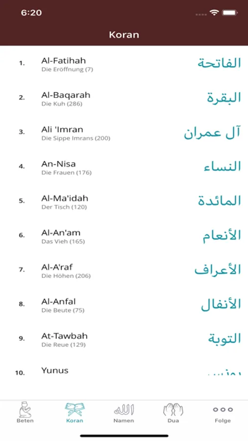 Die Anwendung ist sehr einfach zu bedienen und Sie können Suren zu Ihren Favoriten hinzufügen.