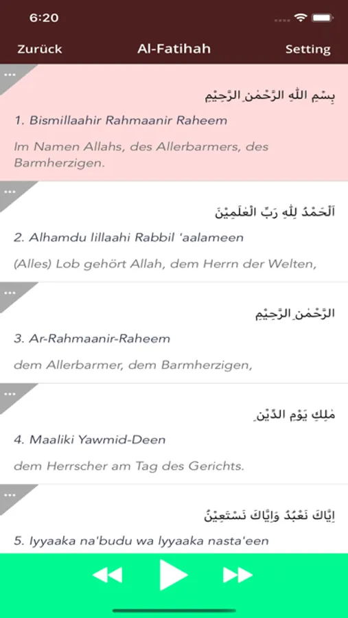 Bei dieser Anwendung werden Sie den Koran mit Audio in Deutsch hören.