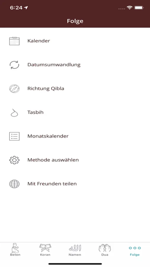 Diese App verwendet Standardberechnungsmethoden und bietet auch Optionen zur Auswahl verschiedener Berechnungsmethoden, die auf Ihrem Standort basieren.