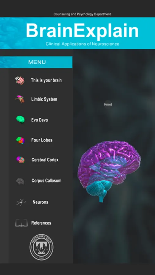 This app is designed to highlight specific regions of the human brain in three dimensions. It includes brief descriptions of the functions associated with those regions. Users are able to 'enter' the brain and see it from multiple perspectives. This provides a basis for understanding emotions, mental health issues, and their treatment.