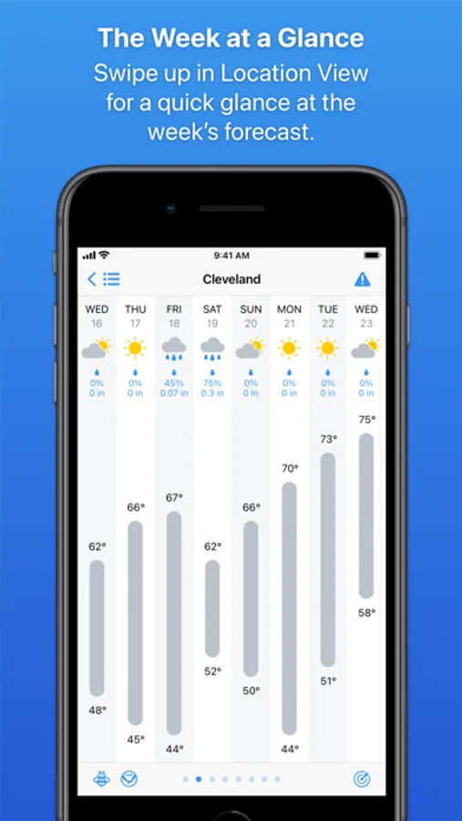 Get a quick glance at the week’s forecast. Tap any day for a detailed look at that day.