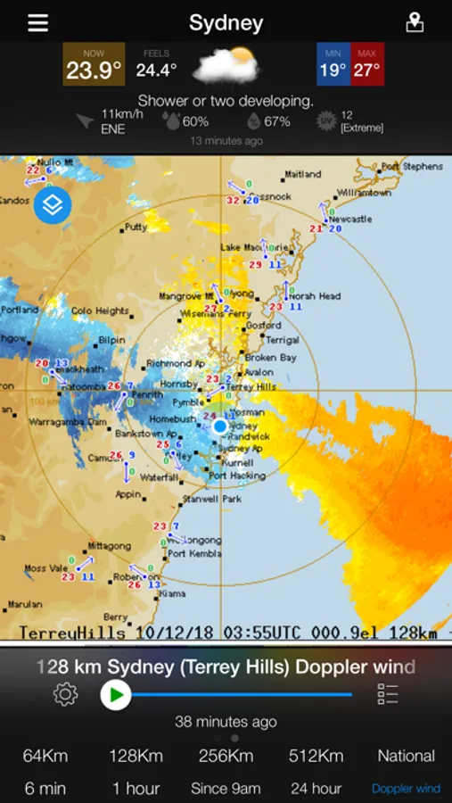 The only app to provide historical radar maps for up to 4 hours. Powerful tool to view the path of incoming rain.
