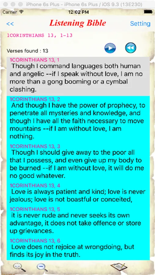 There are functions of zoom-in and zoom-out for text, the ability to save the word to the clipboard to export it to other applications. Audio can be customized at will. Reading can be interrupted and resumed from the same point or reported at the beginning of the chapter or initiated by any verse with a simple click.