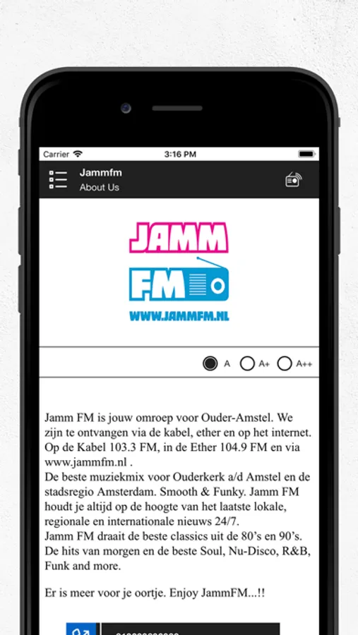 De beste muziekmix voor Ouderkerk a/d Amstel en de stadsregio Amsterdam. Smooth & Funky. Jamm FM houdt je altijd op de hoogte van het laatste lokale en regionale nieuws.