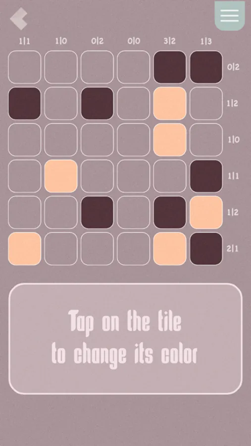 Fill the grid with Brown and Beige squares. Match three in row for each colors.