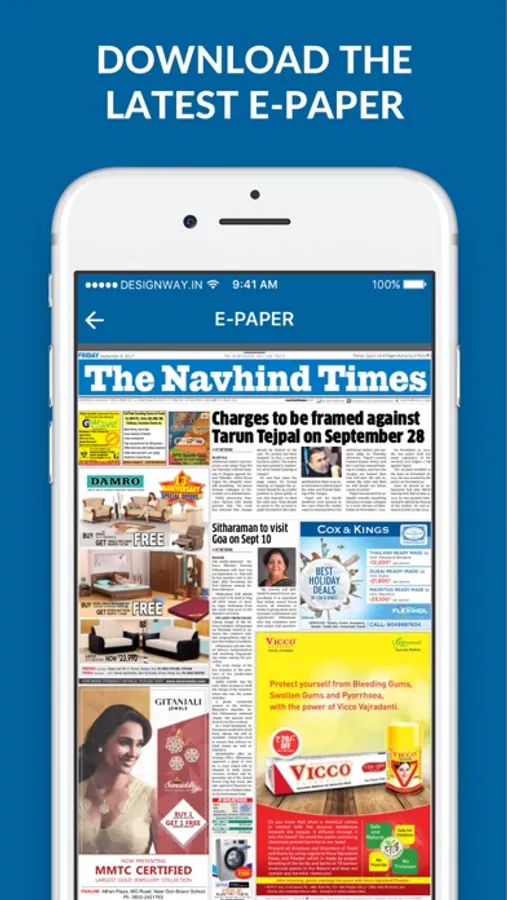 The Navhind Times, the first and largest circulated English Daily from Goa, has earned the trust, respect, and loyalty of the Goans by virtue of its objective reporting, commentaries, and features. It was launched by the House of Demos, a pioneer in the industrial development of Goa, on February 18, 1963, soon after Goa was liberated from the Portuguese rule.The circulation of The Navhind Times is well over 56000 copies. It reaches not only every nook and corner of Goa but also neighboring parts of Maharashtra and Karnataka.