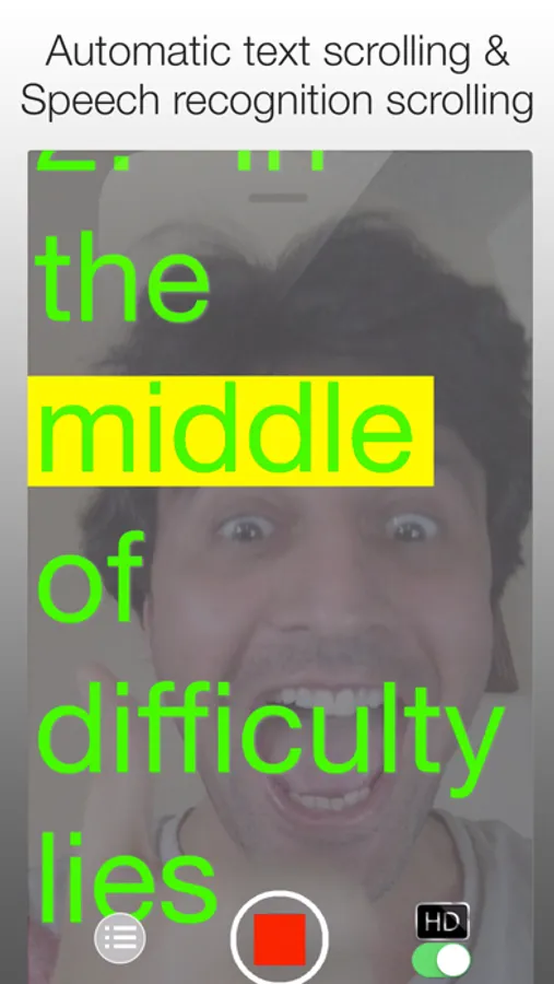 This app uses the front camera to record yourself while you read your script that's scrolling in front of you. It's made in a way that your eyes are facing the camera lens at all times and nobody can tell you're reading from a script!