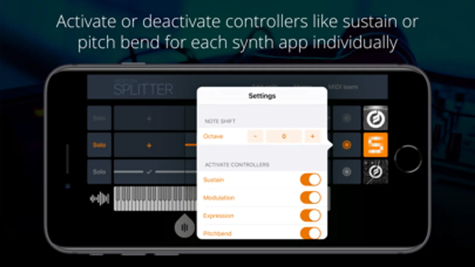 + Choose which controllers (sustain, pitch-bend, etc.) should be active for each synth app