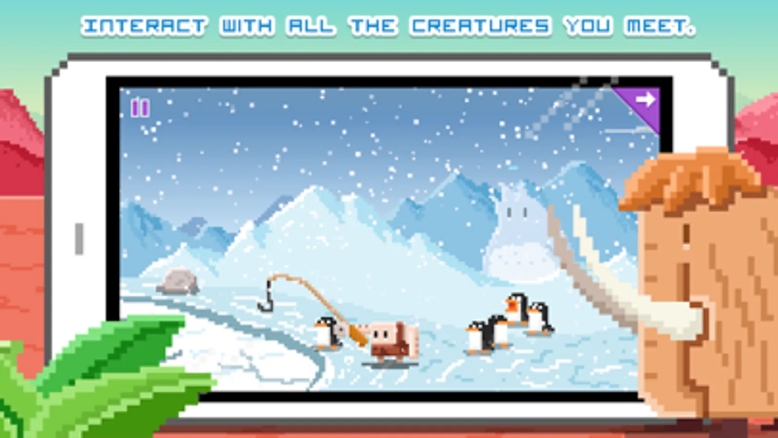 • Interact with all the dinosaurs, mammoths, penguins, yetis and aliens you meet!