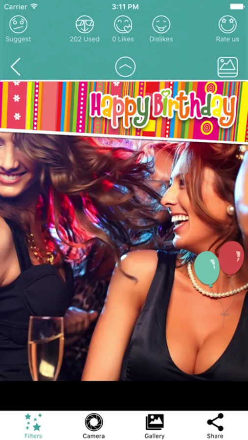 Photos with frames can be saved and shared through your social media sites, or be edited to be sent as birthday greeting cards with your photos in them!