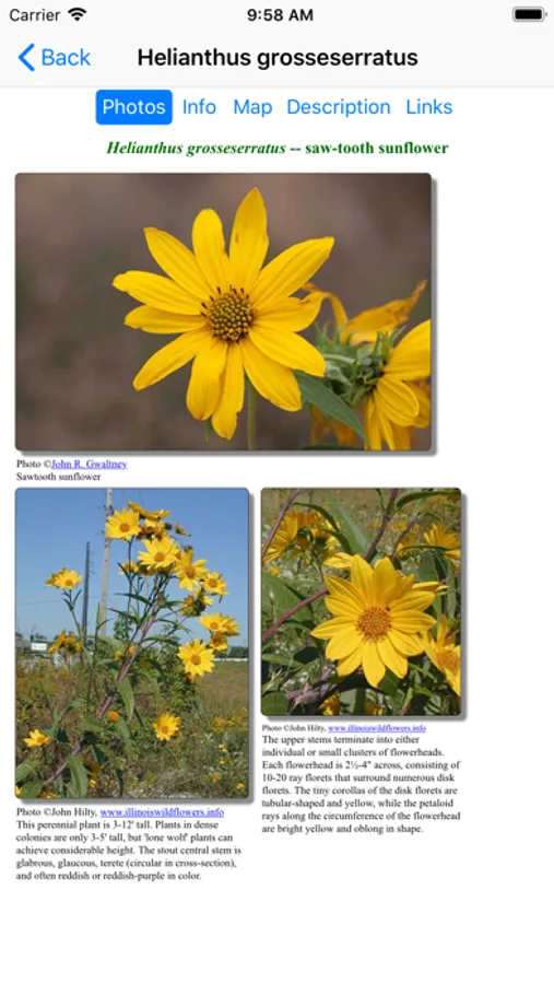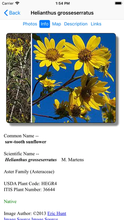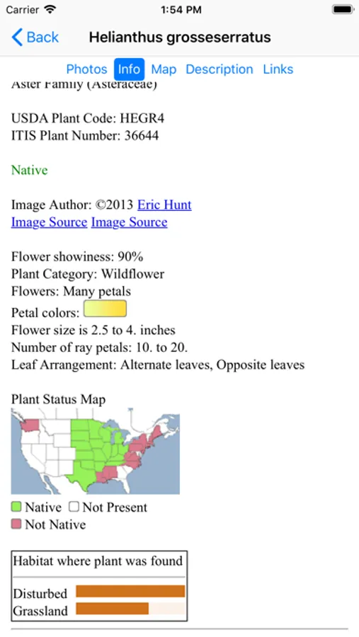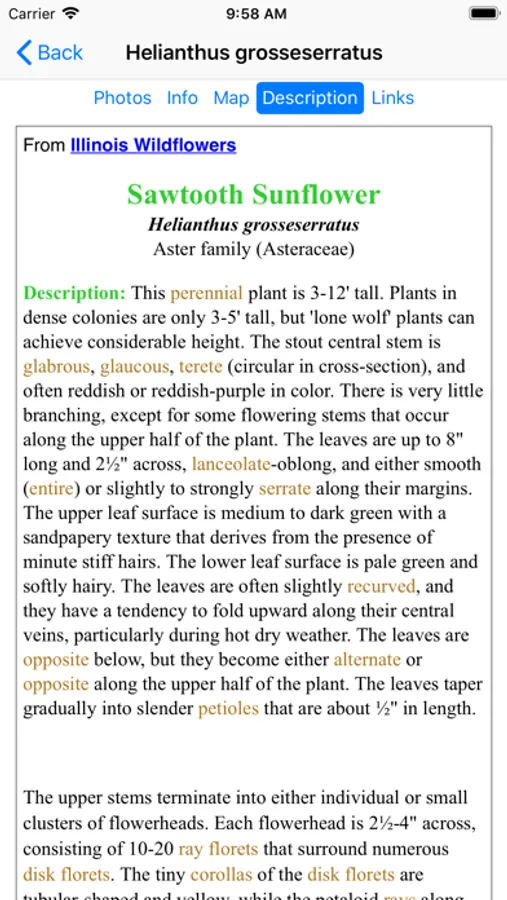 This App, which operates without an internet connection, helps find and identify plants. When you give the App information about a plant, such as its location, flower color and the time of year, the App will quickly show you which plants match your selections.