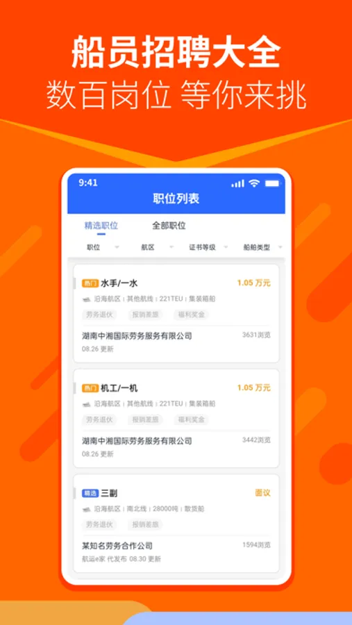 【船员全国找工作】船员在线找船找工作,众多知名航运公司如中远海运等船企发布船员招聘信息,免费找工作更方便;