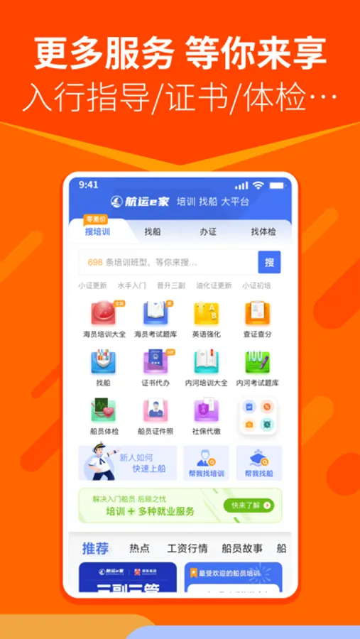 航运e家-船员通用综合服务平台,含船员海员海事局考试刷题,练习学习,有船员海员培训大全预约报名,致力于为全国百万船员提供全生命周期服务。