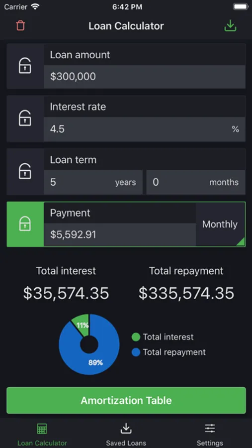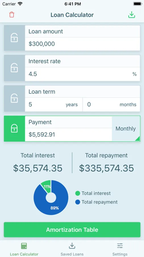 On top of that, interactive graphs and comprehensive loan amortization schedules are available in this free loan / mortgage calculator app.