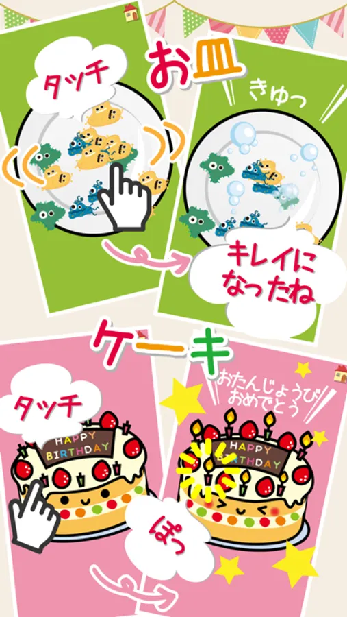 汚れのキャラクターをタッチすると「きゅっ」と綺麗になります。