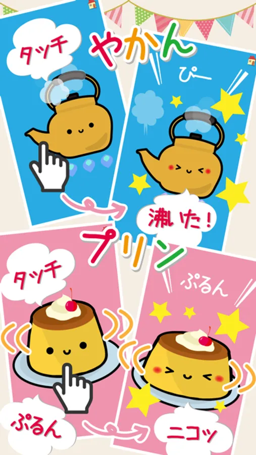やかんをタッチすると湯気が出て「ぴー」と鳴ります。