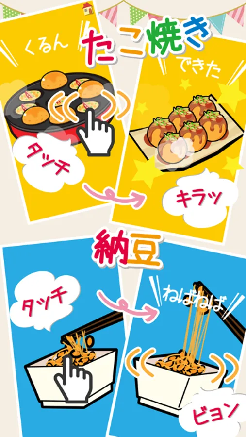 納豆とお箸をタッチすると糸が伸びたり縮んだりします。