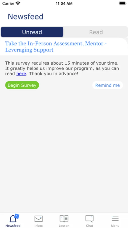 Get notified about updates, see program information, and engage with program content on the newsfeed section of the app.