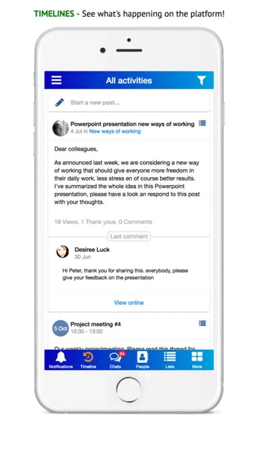 With quick access to the latest commercial news, your timelines, your chats (presented in Whatsapp style), a multifunctional address book and push notifications that alert you to what is happening in real time, the i-share app gives your i-share a boost and revolutionizes the way you work!