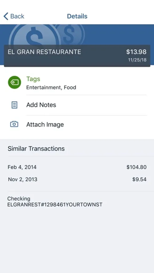 Add Tags, Notes, Images & Geo-Information: By enhancing transactions with custom tags, notes or photos of a receipt or check, you have the ability to stay organized and find exactly what you’re looking for when searching through your finances.