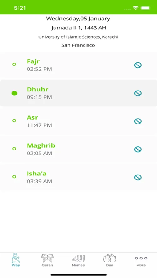 This App use standard calculation methodologies and also provides options to choose different calculation methods based on your location.