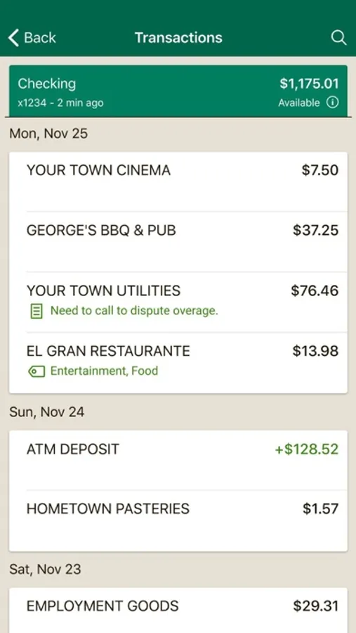 Add Tags, Notes, Images & Geo-Information: By enhancing transactions with custom tags, notes or photos of a receipt or check, you have the ability to stay organized and find exactly what you’re looking for when searching through your finances.