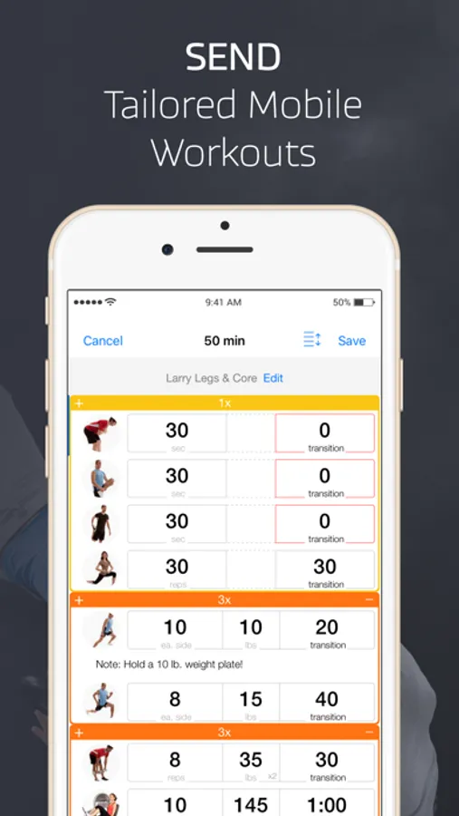 Our workout builder has been lauded by top fitness clubs around the world as the most easy-to-use for trainers to create completely custom workouts from scratch. Templates allow you to save and store full workouts or segments (i.e. warm-up, cool down) for future use. Drag-and-drop features allow you to program straight sets, circuits, pyramids and supersets. You can even intersperse cardio with strength training, rehab exercises, stretches and yoga poses. We give you nearly complete freedom—so get creative!