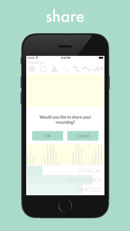 This is a multitouch synth instrument. Play it by touching and swiping the screen, changing the waveforms and sliding the effects to create anything from traditional sci-fi theremin sounds to deep scuzzy soundscapes. Use the looper controls to record, loop and overdub layers. Then if you wish to save or share your recording, hit the download button to send your wav file to other compatible apps like Messages, Email, Dropbox etc.