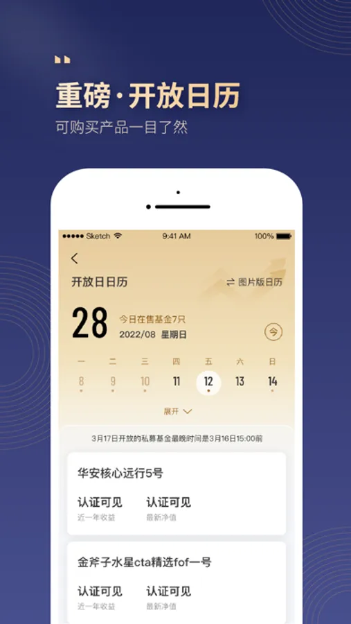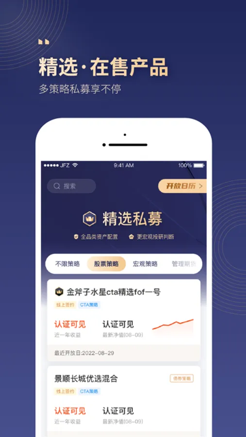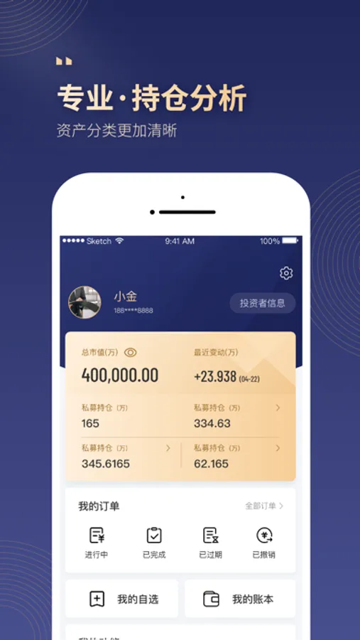 小金掌上私募的出品方金斧子于2016年获中国证监会颁发的“经营证券期货业务许可证”, 致力于成为“研究与科技”驱动的家庭基金配置服务商,基于成熟的投研、风控、产品、投后、理财师、科技服务体系,打造“千人千面”的定制化家庭理财服务云平台。迄今为止,金斧子平台中产以及高净值注册用户已突破80万,累计为客户配置的阳光私募、固定收益等基金规模已超300亿,超过10万个家庭得到了专业、独立、实时、高效的一站式资产配置建议与基金交易服务。