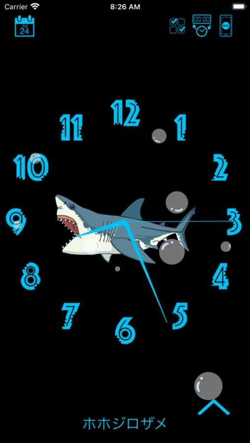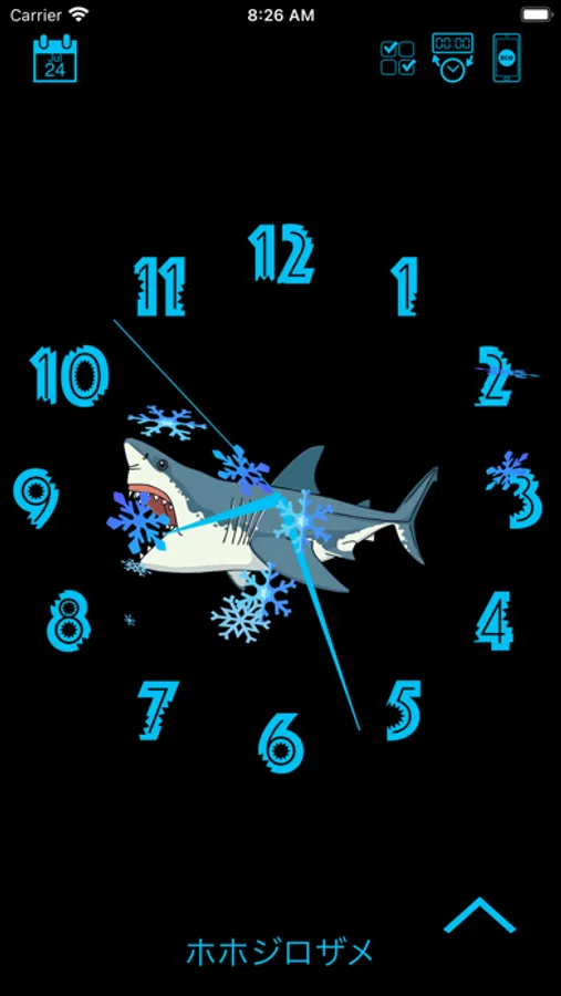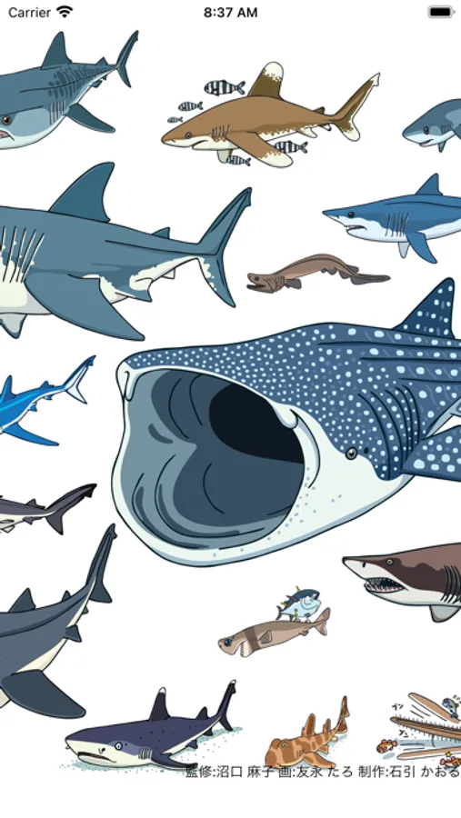 おなじみ、日本で唯一(ゆいいつ)のシャークジャーナリスト、「沼口麻子(ぬまぐちあさこ)」氏が監修(かんしゅう)した時計アプリです。