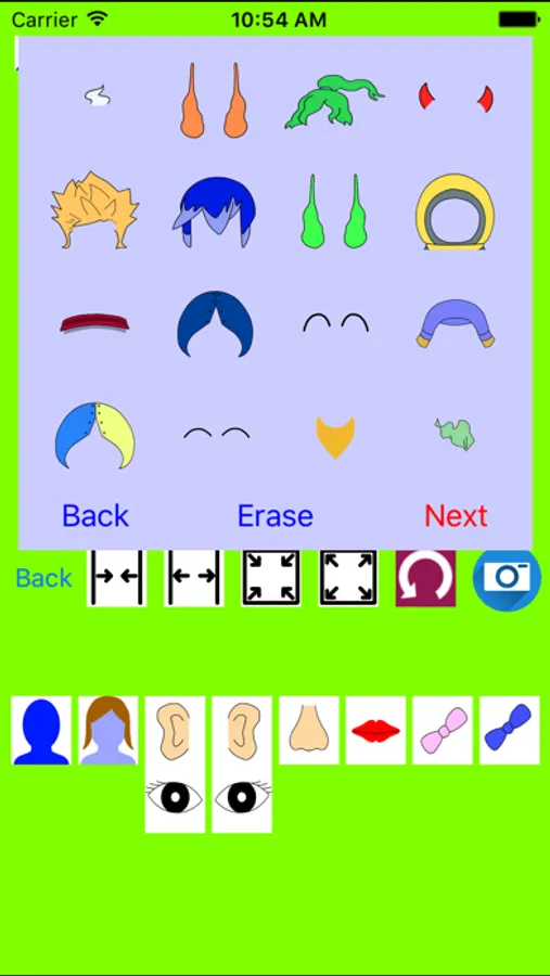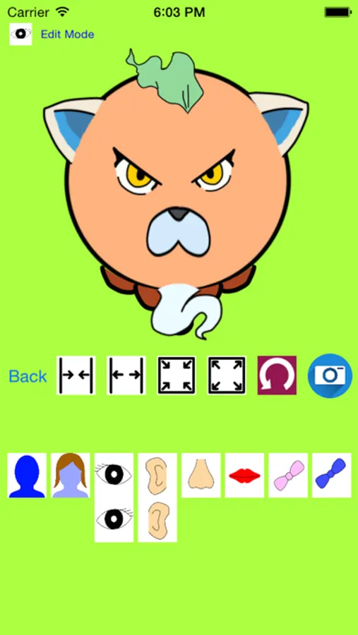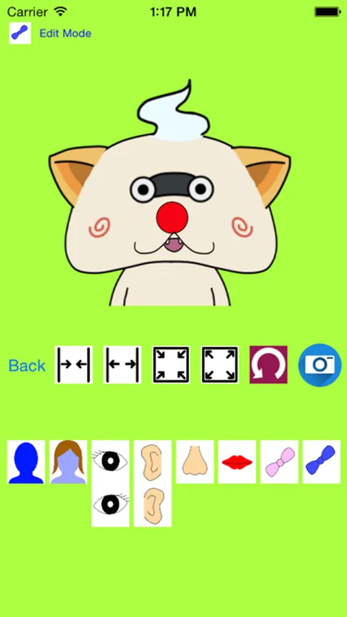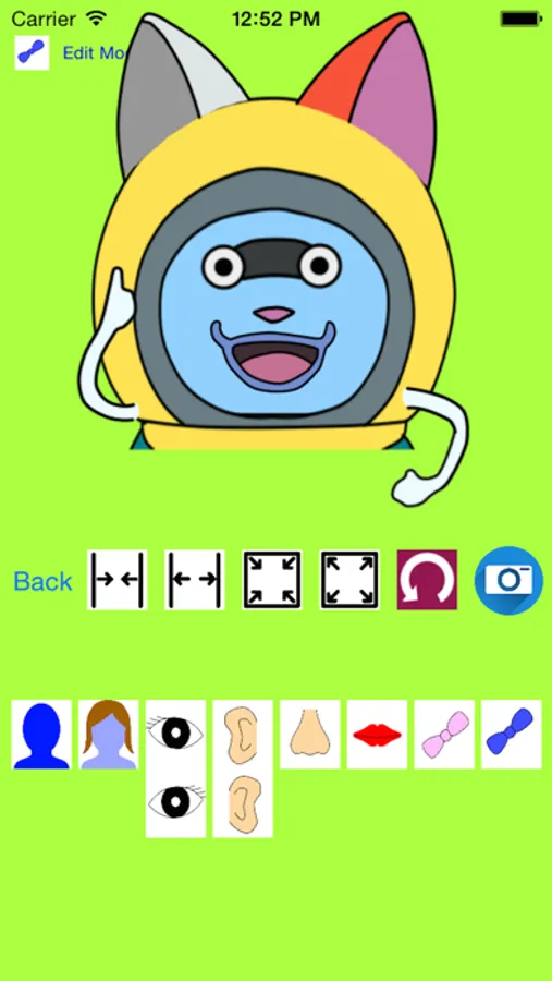 Just choose the shape of the face, eye, ear, nose, mouth, and change the size, and just put it where you want to.