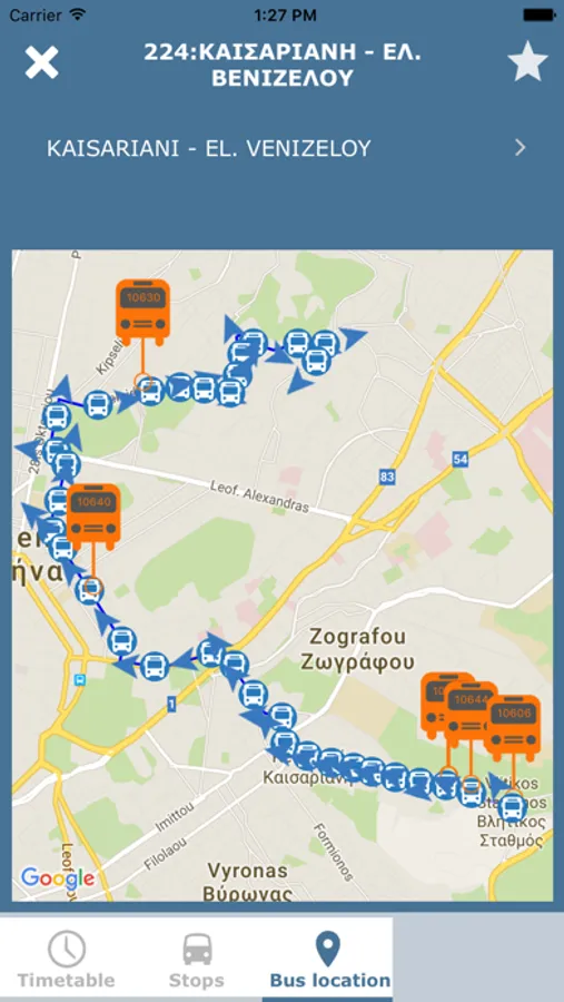 * Routes. See real-time location of buses.