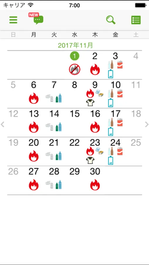 収集日変更のお知らせやイベント情報などを確認することができます。