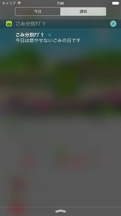 収集予定のごみ種別を前日と当日にアラートでお知らせします。時間は自由に設定することができます。