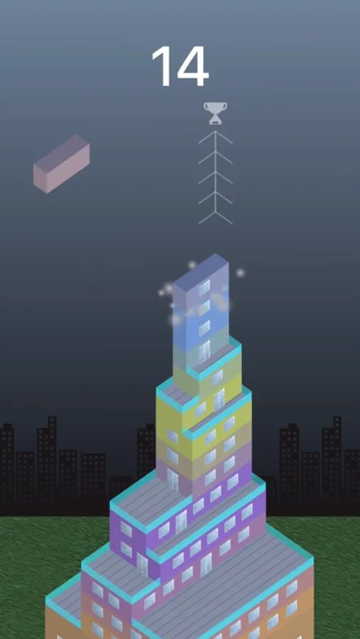 SkyBuilder is a fun game for kids of all ages. The object is to build a skyscraper tower made of blocks as tall as possible. Try to go for as long as you can stacking blocks and rack up the highest score you can. As you run up your score, the blocks will go faster and faster, so you have to change the timing of your taps, and tap more and more quickly, in order to get it right.
