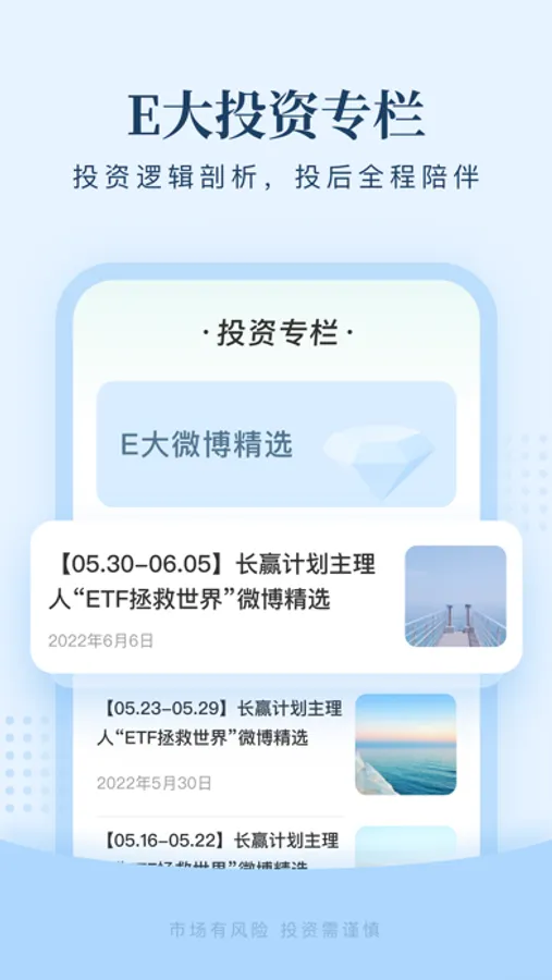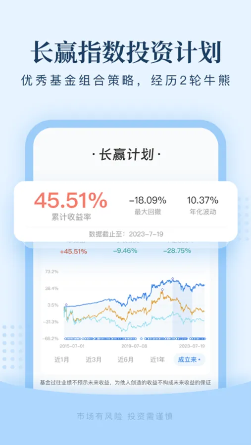 投资理财顾问全程陪伴,在用户情绪焦虑或者亢奋的时候,给予正确的指导,避免用户受情绪影响做出各种不理智的操作而遭受投资损失,帮助用户走过市场的高峰和低谷,与时间为伴,积累长期财富。