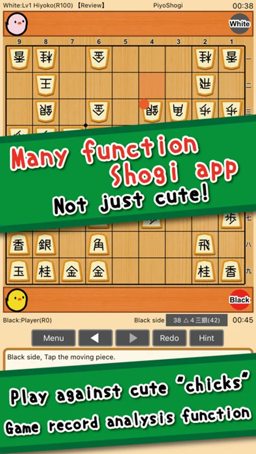 It is a Shogi app to play with cute "chick". Cute but AI is serious.