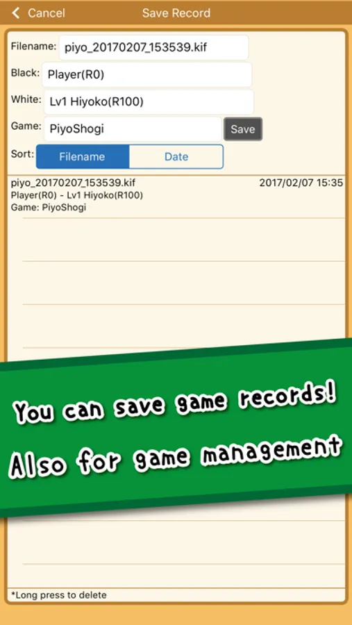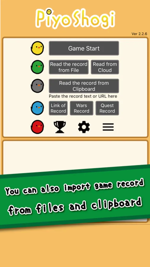 In addition to playing games in PiyoShogi, you can also read and manage the game records played with other applications.