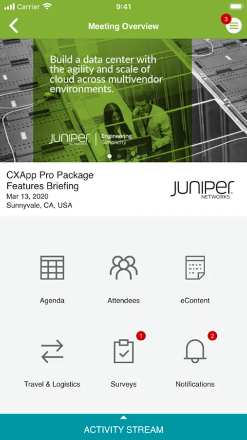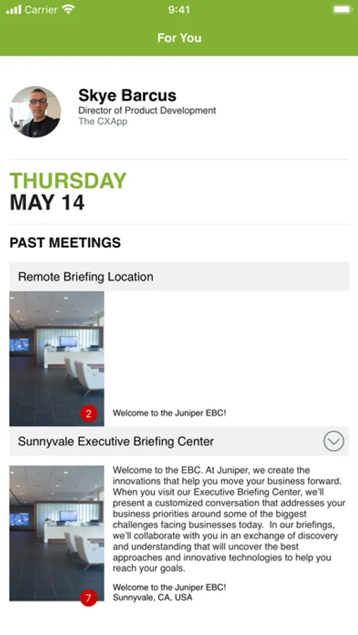The Juniper EBC App is the perfect app for your important Executive Briefing Center (EBC) meetings. The app provides a central place for Juniper employees, customers, and meeting attendees to see upcoming Executive Briefing Center visits or meetings, get room names, maps, agenda items, presenter bios, travel and logistics options. The robust notification system can inform attendees of room changes, eContent updates and more. Integrated surveys allow users to easily give feedback directly within the app.