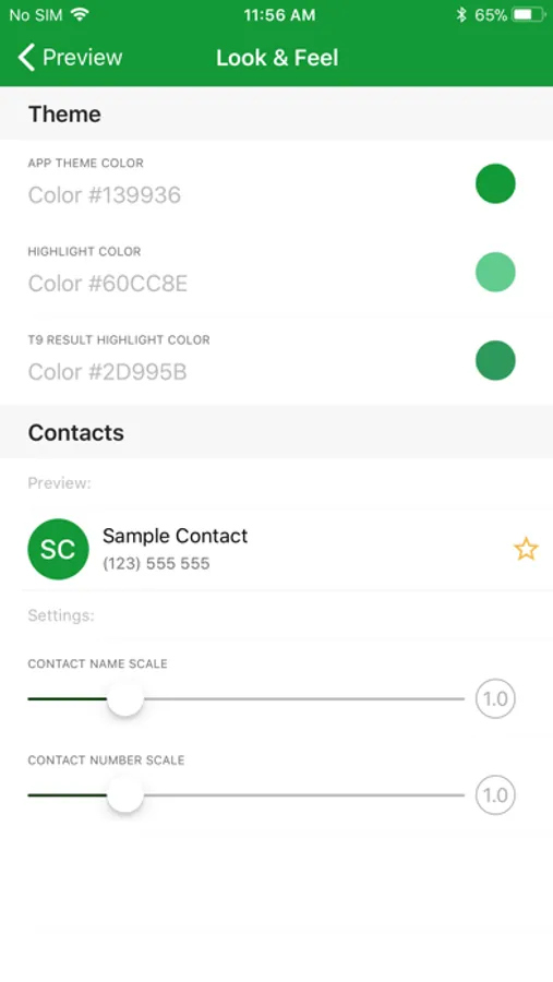 Customize the App theme color, font size, dial pad background color, buttons style, font size, and more, and save your style in Themes.